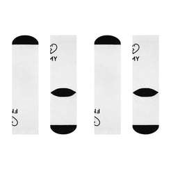These cushioned DTG crew socks are a one-size style designed with both function and appearance in mind. With the fully cushioned heel-to-toe, these socks provide superior comfort, while the DTG print process allows for ultra-crisp, crease-free printing. Composed of 73% polyester, 18% nylon, 6% spandex, and 3% cotton, these socks are an elevated alternative to the typical sublimation sock and provide a clean, comfortable base for your all-over print designs.